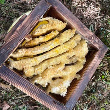 一段目が空だと思ってしまったのですが、取った巣をよく見てみると蜜が溜まっている部分がありました。 乾いてしまっている部分をなるべく削ぎ落として蜜の入っている部分をタッパーに集め、木べらで砕いていきます。 砕いたものを濾し … 続きを読む : 蜜が採れました