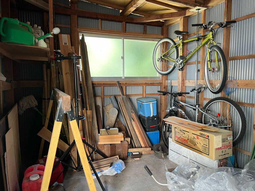 物置きに沢山の端材があるので、先ずは物置きの整理から。