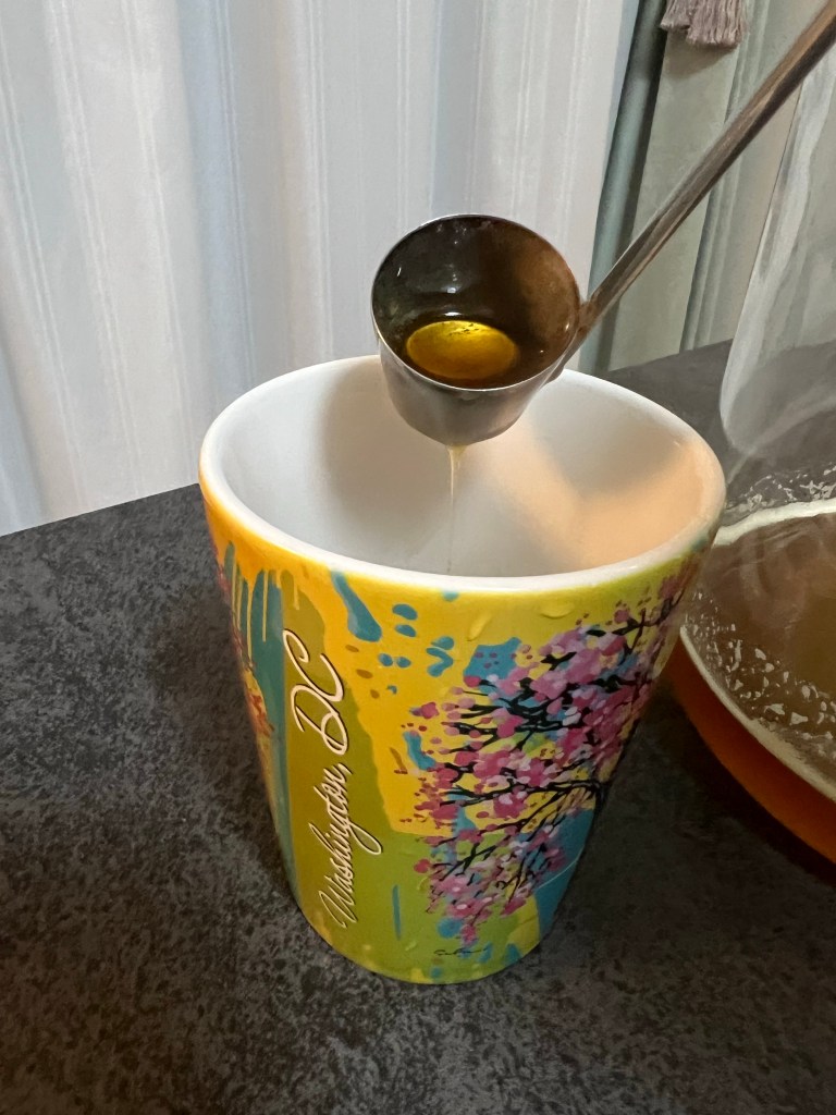 採れたハチミツ、少し白い泡と言うか、クリームのようなものが浮いています。