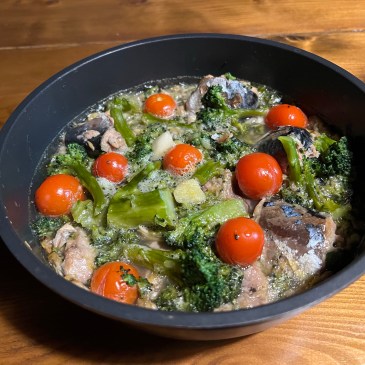 先日、テレビで見たレシピ。簡単そうなので再現してみました。 材料はまずはサバ缶とアサリ缶。 それに日本酒、ブロッコリー、ミニトマト、ニンニク(すりおろし)とオリーブオイル。 薪ストーブの上で。 出来上がり。超簡単です。 … 続きを読む : 簡単アクアパッツァ