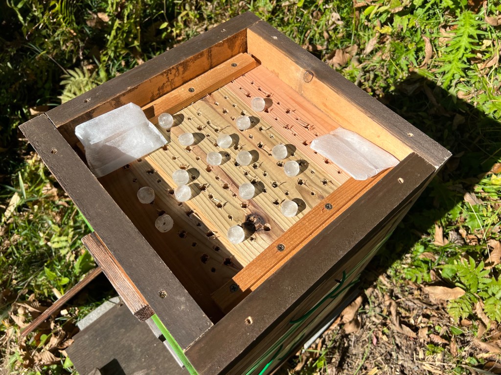 また、蜜源が足りない、もしくは、なんらかの原因で蜜の収集力が弱いようなので、これからの季節のために「ミツバチ専用元気飴」をスノコの部屋に入れてあげました。