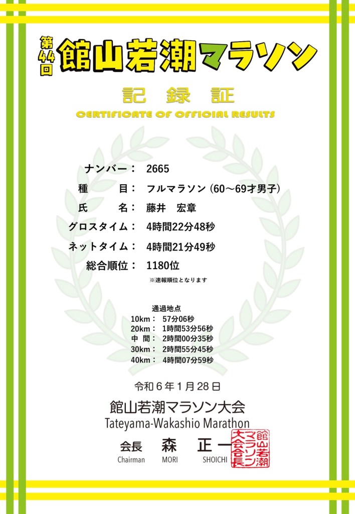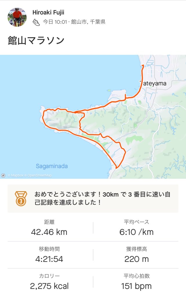 2017年以来の館山マラソン参加。フルマラソンは2022年の横浜マラソン以来です。
