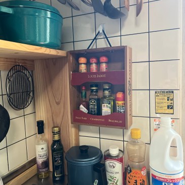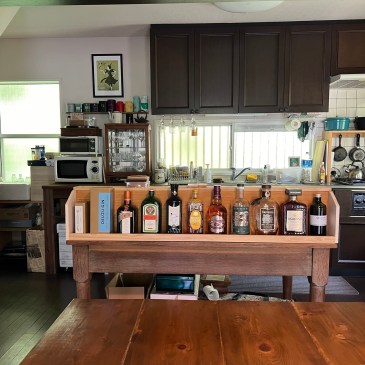 朝、ワインの木箱で調味料棚を作った勢いで工作意欲にエンジンが掛かり、朝食後、キッチンのテーブルの上に置く棚造り。材料は全て家にある廃材を利用しました。 お酒が溜まり過ぎてごちゃごちゃになっているので、ダイニング側にお酒の … 続きを読む : 工作 その2