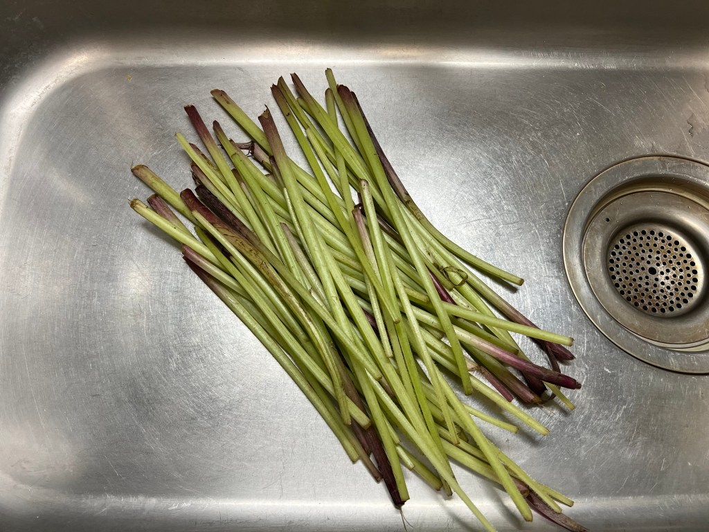 草刈り機で刈ってしまうのももったいないので、手間ですが、少し採取。