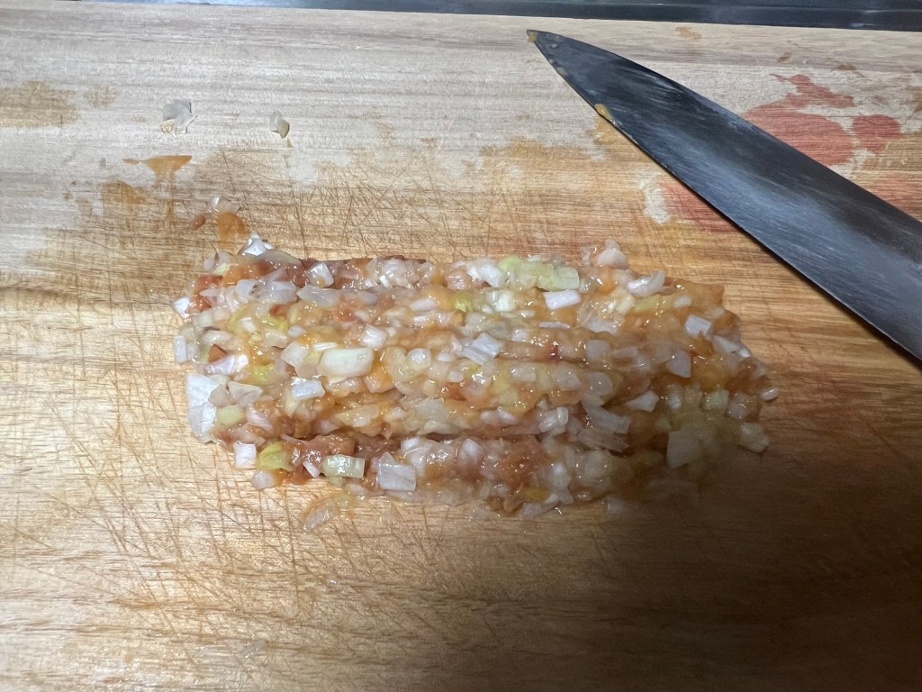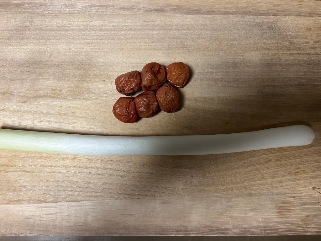 ネギと梅干しの果肉でタタキを作り冷蔵庫へ。