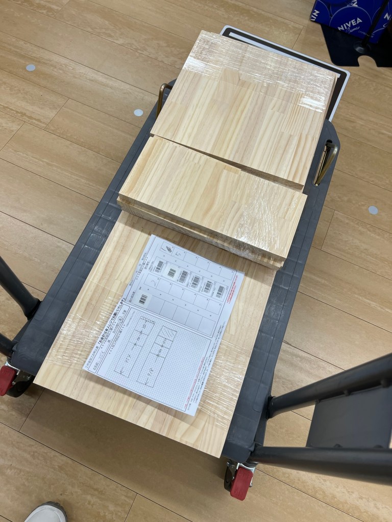 頭で設計図を描いてホームセンターで寸法を指示し材料をカットしてもらいました。