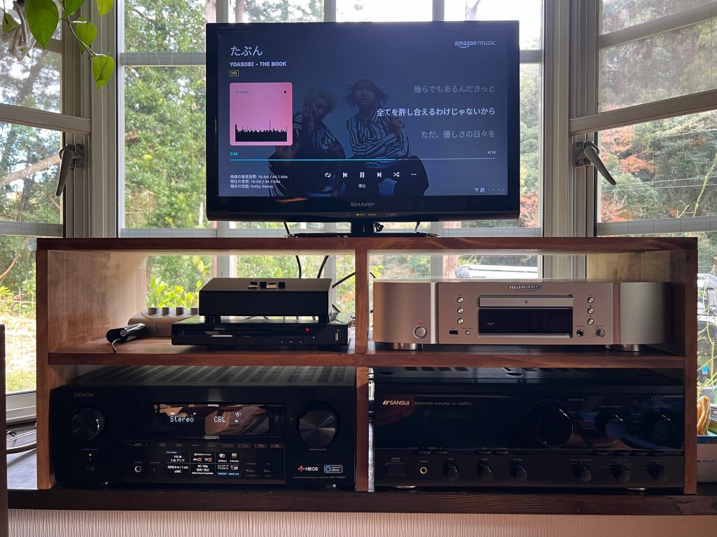 出窓に積んでいたSansui のアンプとAVアンプ、CDプレーヤー。