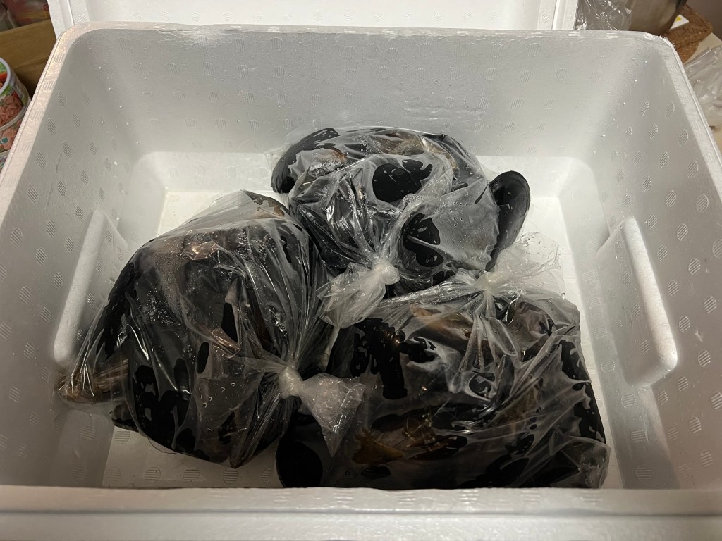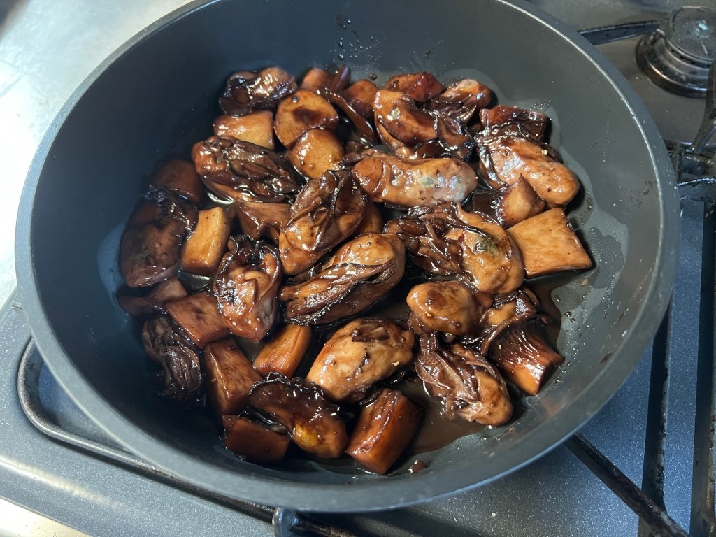 オレンジワインが終わっらところで、発注していたムール貝が届かない中、牡蠣とエリンギの赤ワイン煮。