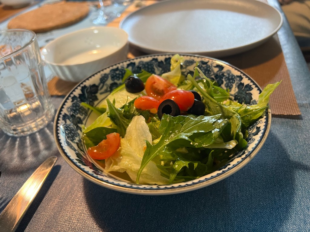 スパークリングを楽しんでもらってる間にサラダを用意。