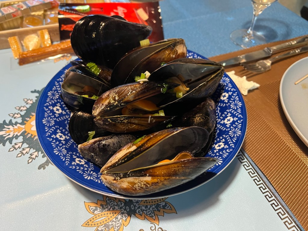 早速、大つぶのムール貝を白ワイン蒸しに。