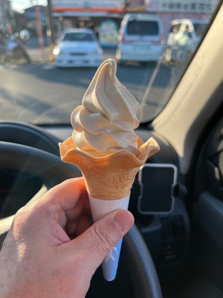 終了後は温泉施設「南総里見の湯」で冷えた身体をゆっくり暖め、帰り、「木村ピーナッツ」のピーナッツソフトクリームで糖分を補給。