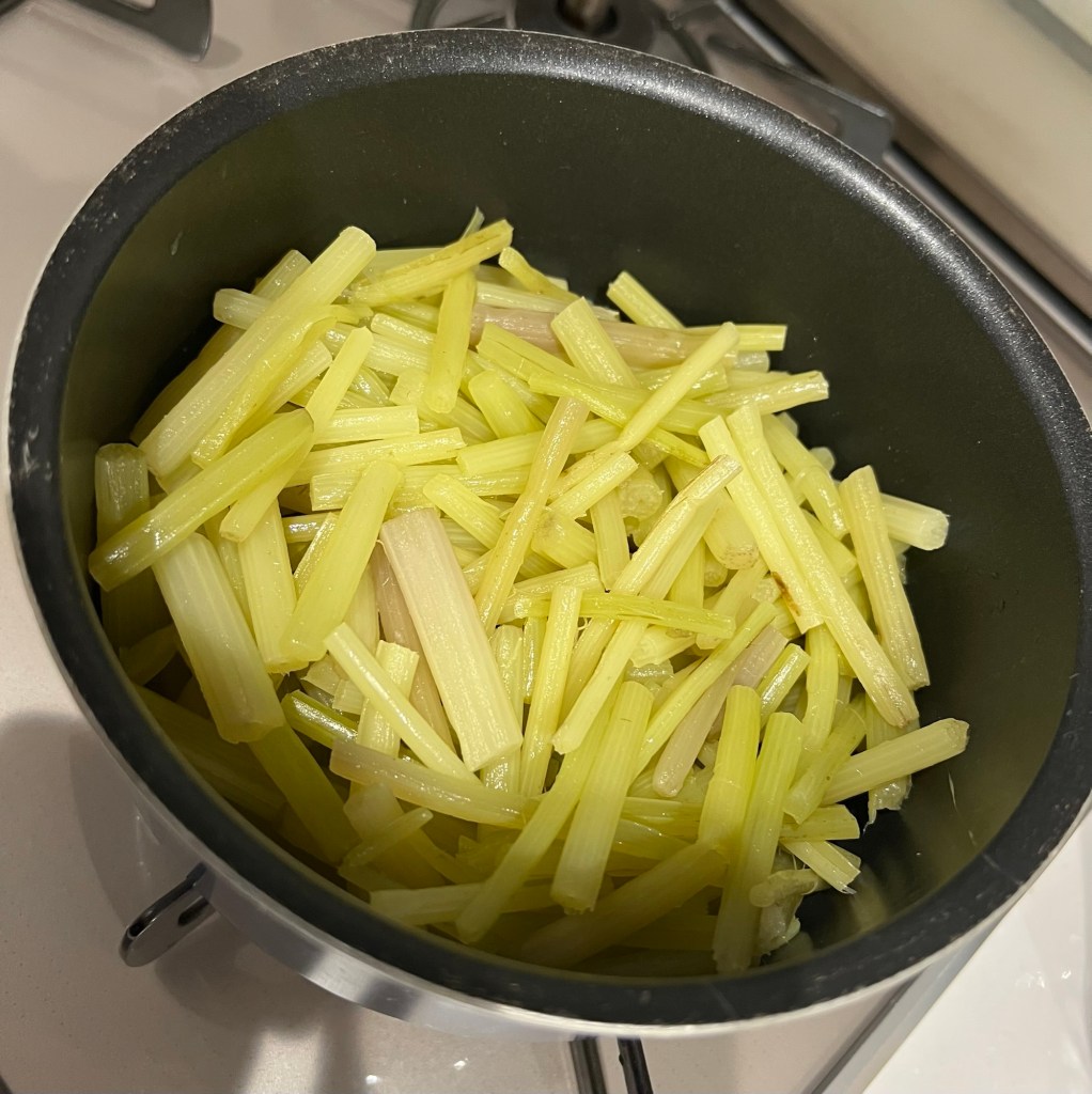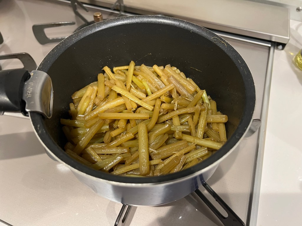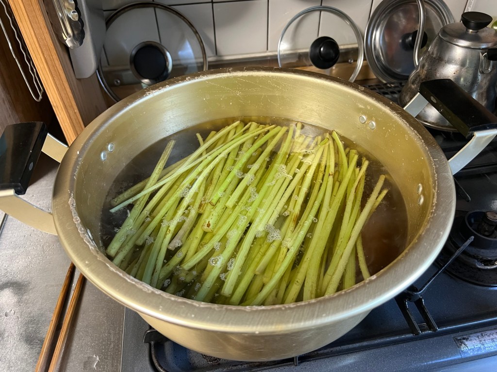 レモンの木の足元もフキで覆われてしまっていたので全てもぎ取り、捨てるのはもったいないので料理に使うことに。