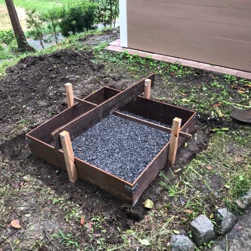 若手のアーティストに屋外に設置するアート作品をお願いしていて今日はその台座作りを途中まで。先ずは穴掘り。 物置にあった合板で型枠を作り水平を取りながら設置。 コンクリートの重さで板がずれないように周囲に土を入れ足で踏み固 … 続きを読む : 作品の台座作り