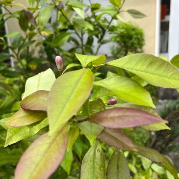 2年前に植えたレモンの木。昨年は花が付かず実もならずでしたが。 蕾が付きました! 今年は実がなるかな?楽しみ。