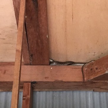 梅取り用のバケツを取ろうと物置きに入り、ヘビでもいないかと上を見上げたところ、やはりいました!アオダイショウ(青大将)なので怖くはないですが (^^;; 。以前、その物置きにおいてあった自転車の車輪のスポーク … 続きを読む : 青大将