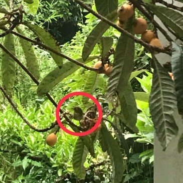 鳥の鳴き声が聞こえるので庭に目をやるとメジロが2羽、枇杷の木に。そっとiPhoneを持って望遠でガラス越しに室内から撮影。 この後、気付かれて逃げられてしまいました。 メジロが食べてるならこのままにしておこう。